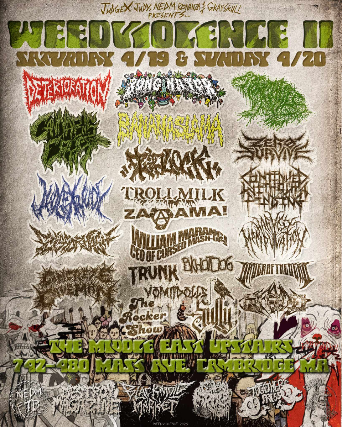 The Middle East / Judge Judy / NEDM Bonanza / Grayskull Booking Present : Weed Violence Festival 2 - Day 2 feat Bonginator, Frog Mallet, Concrete Caveman, KFC Murder Chicks, Bananaslama, The Rocker Show, William Marancini, Order Of The Dead, Continued Without A Finding, Trunk, Cannabis Crypt , All Ages, $30, 2pm doors, All Ages, $30, 2PM Doors