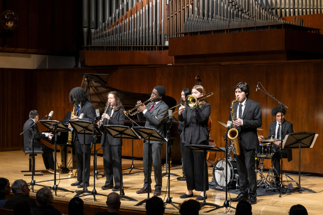 Each of Juilliard Jazz’s small ensembles is named after a jazz legend. This does not mean the named ensemble will solely perform the works of that artist, but invoking these names reminds us, and ouraudience, of our music’s great history and its interconnectedness. In addition, ensemble coaches will incorporate important aspects of each artist’s work into their ensemble teaching throughout the year. The named ensembles and their coaches: • Dave Brubeck Ensemble, in the spirit of integrating arts,coached by Jennifer Krupa. • Betty Carter Ensemble, in the spirit of scatting, musical freedom, and reimagination, coached by Donald Vega• Dizzy Gillespie Ensemble, in the spirit of innovation, dance, Afro-Latin music, humor, and teaching, coached by Elio Villafranca• Jelly Roll Morton Ensemble, inthe spirit of interpreting the original meanings of jazz, coached byDoug Wamble • Max Roach Ensemble, in the spirit of Civil Rights experimentation and understanding of the African Diaspora, coached by Isaiah J. Thompson • Mary Lou Williams Ensemble, in the spirit of stride piano, arranging,and intellectual discourse on music techniques and meaning, coached by Bruce Williams • Duke Ellington Ensemble (Artist Diploma Ensemble), in the spirit of being ambassadors to the world, coached by Ben Wolfe.