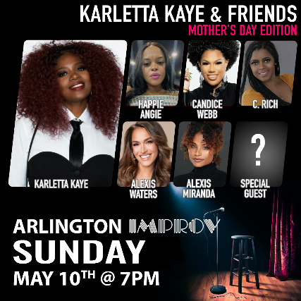 Karletta Kaye known as THE LADY BEHIND THE LAUGHS in the community. Native of Lancaster, Tx and rising star on the Dallas comedy scene and a self-proclaimed comedian and actress making big waves. Karletta brings her signature style of funny with roasting, realness, and unpredictable humor to every stage she hits!