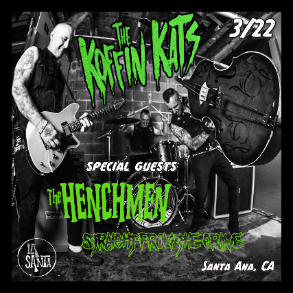 The groundwork for what has become the relentlessly-touring sonic assault known as The Koffin Kats was laid near Detroit, Michigan when Vic Victor (Lead Vocalist, Upright Bass) joined forces with long-time friend Tommy Koffin (Guitar). After adding Damian Detroit (Drums) the band kicked off in June 2003, stopping for nothing. Now, with over ten years of touring internationally and over two thousand live shows, the touring trio’s current home is out on the open road.