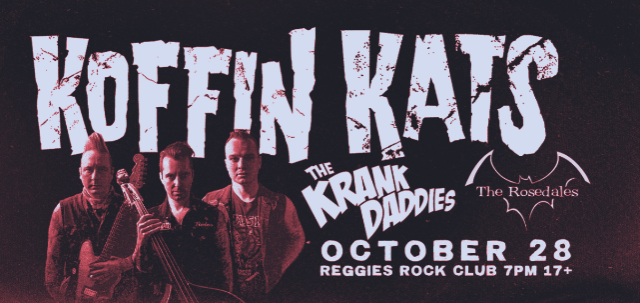 Six years after his departure, Tommy Koffin returned to playing guitar with The Koffin Kats. With Vic Victor on lead vocals and upright bass, and E Ball Walls on drums. In 2017, the trio released their latest album titled “Party Time In The End Times.”