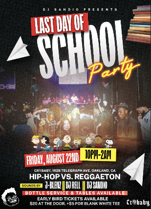 Last Day of School....Where nostalgia meets nightlife- Hip-Hop Vs. Reggaeton in the air while you autograph your crush's T-Shirt. Bring your own or purchase one at the door.