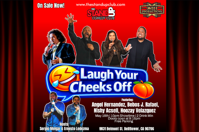 Laugh Your Cheeks Off is stacking the stage with killers like Angel Hernandez, whose sharp crowd work hits faster than your group chat notifications, and Hoozay Velazquez, a rising crowd favorite known for turning real-life chaos into punchlines that sting (in a good way). Add in Bebos J. Rafael and Nishy Acsell bringing their own brand of unpredictable heat, while hosts Sergio Melgar and Ernesto Ledezma keep the energy unhinged and unstoppable.
