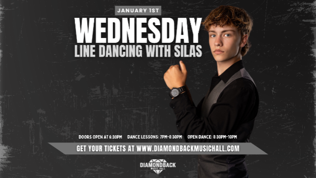 Join us on Wednesday, January 1st, at Diamondback Music Hall for exciting line dance lessons taught by the one & only Silas!