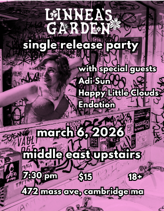 The Middle East presents: Linnea's Garden, Adi Sun, Happy Little Clouds, Endation 18+, $15, 7:30 PM Doors