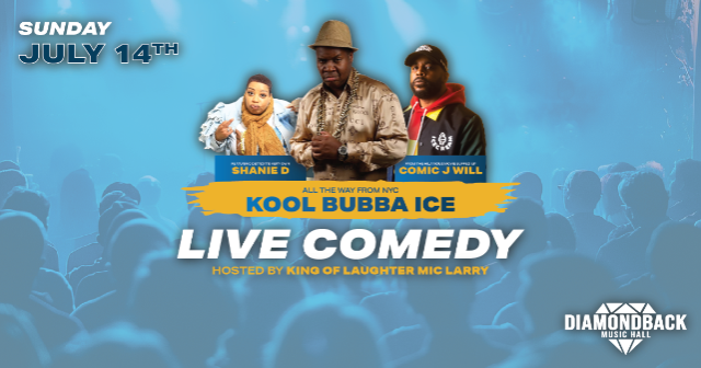Join us for a comedy bash featuring kool Bubba Ice, Comic J Will, Shane D, and with your host MIC Larry keeping the laughs rolling all night! π€