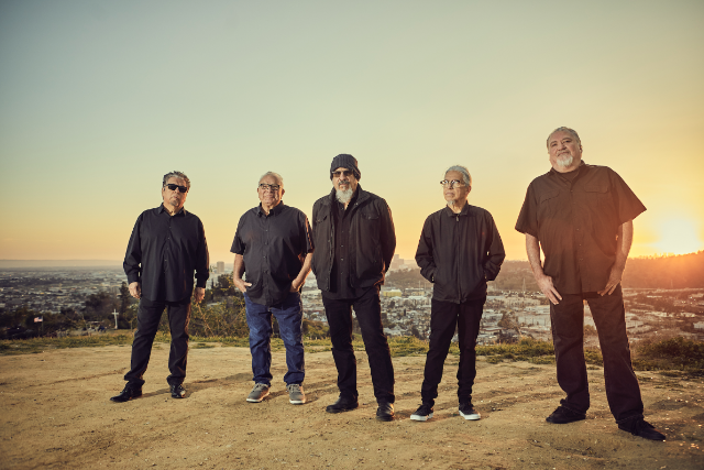 It’s a matter of time. 50 years to be exact. And in that time Los Lobos have created an unprecedented body of work, a legacy of greatness. The numbers are staggering: 100+ gigs a year for five decades running, crossing millions of miles to rock millions of fans. And that’s just at the live shows. In between they’ve recorded 17 studio albums, 7 live LPs, 3 compilations, 2 EPs, 2 DVDs, and contributed 40+ guest appearances on their friends’ recordings—all garnering 4 Grammys, an Austin City Limits Hall of Fame induction, the ALMA Ritchie Valens Pioneer Award, NEA and Hispanic Heritage Foundation Honors, Congressional recognitions, plus countless “Keys to the City” and “Los Lobos Day” celebrations. And those are just a few of the highlights. But beyond all the hoopla and applause (and the source of it all, really) is the tremendous heart. Rather, hearts. Cinco corazones. Five blood brothers who have dedicated their off-stage time to helping others, working for peace and justice, penning some of the most literate and important music of their time, transforming the hard cries from the East L.A. barrio into songs of hope, tales of common folk finding ways to endure. The young wolves were weaned on late-night radio’s soul, R&B, and doo-wop. Were cured through the African-American currents of the blues, jazz, and rock ‘n’ roll. An amalgam. As proud Chicanos, their songs have always glistened with the distillation from their Mexican and Latin American roots— nourished by Norteña and rancheras, buoyed by bolero and cumbias, soaring on the rhythms of son huasteco and son jarocho. Los Lobos have helped spread the rich diversity of cultures across every continent, throughout the global community. Kids in Antwerp now know about Aztlán. Residents of Luxor and Ghana are crooning Lalo Guerrero. People from Laos and Bulgaria are belting “La Bamba”—all thanks to The Wolves as cultural ambassadors. Talk about a living legacy. Talk about a productive half century. And in the true rebel spirit, they did it all on their own terms, against formula. For the ages. To our delight. Quite simply, they are one of the tightest, one of the best, one of the most prolific bands ever. And, amazingly, with the original founding members as the pack the entire time. Unprecedented. As their liner notes put it, quite simply: “Los Lobos still are David Hidalgo, Louie Pérez, Jr., Cesar Rosas, Conrad Lozano, Steve Berlin.”