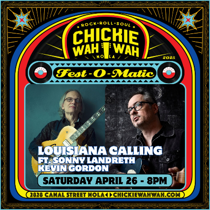 As part of our Fest-O-Matic series, we are excited to bring back “Louisiana Calling,” a 3-night residency by one of the finest slide guitar players to ever pick up the instrument…Lafayette’s own Sonny Landreth! Bonnie Raitt calls him, “one of the most astonishing guitarists I know.” Eric Clapton says, ““Sonny Landreth is probably the most underestimated musician on the planet, and also probably one of the most advanced.” With multiple Grammy nominations and credits that include Clifton Chenier, Jimmy Buffett, John Mayall and John Hiatt, Sonny has been lighting up stages around the world for decades. And we are blessed that he chooses Chickie Wah Wah as the place to do a residency with some of his favorite musicians in South Louisiana. Each night will feature another artist handpicked by Sonny starting with a full set of their own music, and then Sonny closing the show with a set of his own.   Wrapping up the series on Saturday 4/26, we will feature Monroe, LA native and Americana master singer-songwriter Kevin Gordon. Sonny and his band will follow with a set of their own on each night. All of the shows in this series are going to be absolute stand-out highlights in a jam packed Jazzfest season, so get your tickets now and get ready to rock!