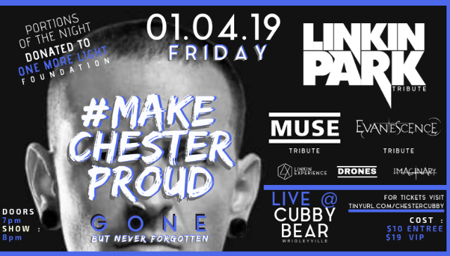 #MakeChesterProud with Linkin Experience, Drones, Salt Sweat Sugar [just added] Portion of proceeds donated to ONE MORE LIGHT