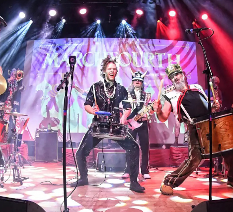 MarchFourth is a kaleidoscope of musical and visual energy that inspires unabashed dancing and an atmosphere of celebration. Born in Portland 22 years ago on a Mardi Gras Day, MarchFourth’s collaborative roster has evolved through many musical generations. The M4 family now spans from Oregon and Seattle all the way down to New Orleans.
