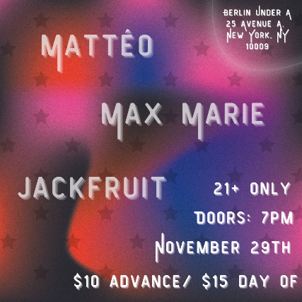 Jackfruit is an indie singer/songwriter based in New York. Their music is deeply personal and never shies away from almost uncomfortable honesty. The combination of lush and evocative lyrics with strong vocals and versatile melodies echo the style of Samia and Big Thief. They’ve been consistently playing venues around New York City for the last year and a half and are currently beginning the process of recording an album