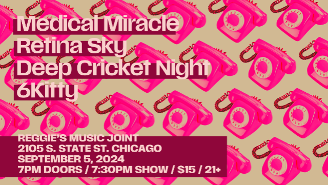 6kitty is a Chicago 3-piece, female-fronted indie rock band formed in 2018. Their sound has been compared to Vanishing Kids, UV-TV, and the Pixies. They fuse blended vocal harmonies, melodic forward bass lines, and hard-hitting drums. They released their first album, Tux, on 11/11/22 which was included in Fast ‘n’ Bulbous’ Top 100 Albums of 2022.