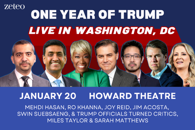 Join Zeteo for a grand event that includes Mehdi Hasan interviewing Rep. Ro Khanna about ICE, Greenland, Epstein files and more; a unique conversation with Joy Reid and Jim Acosta on how the mainstream media is failing this moment; plus Swin Suebsaeng moderating a panel discussion with former Trump officials Sarah Matthews & Miles Taylor breaking down Trump’s fascist actions and what might happen next. You’ll get the chance to ask your burning questions and meet and take photos with the Zeteo team. **Sponsored by legendary bookshop and restaurant busboys and Poets.