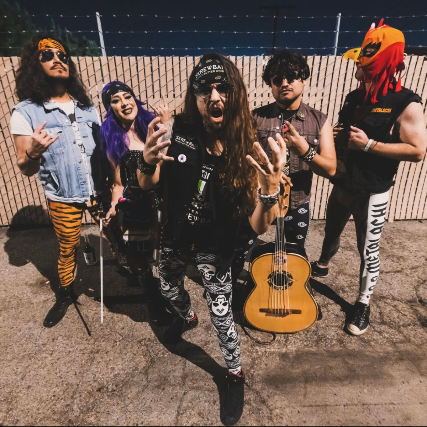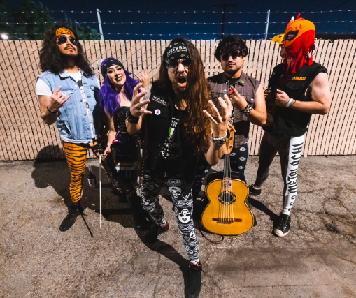 flamboyant of GWAR, and the eclectic rawness of Rob Zombie. There’s also a little dose of Spinal Tap and a hit of Cheech & Chong. The music is classic metal covers from artists like Metallica fused with classic mariachi by Vicente Fernandez and Mariachi Vargas de Tecalitlan. Their setlist is punctuated by comedic interludes and skits.