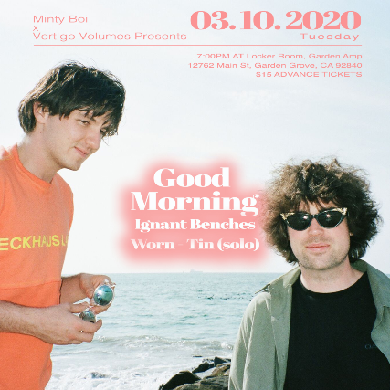 Good Morning is the recording project of Stefan Blair and Liam Parsons. An experiment in blurring the lines that circle guitar pop, Good Morning are at once scrappy and melodic, cynical and silly, narrative and abstract: guitar music that’s distinctly contemporary and never self-serious.