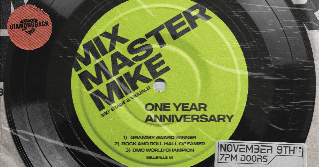 Join us Saturday, November 9th, as we celebrate our ONE-YEAR Anniversary with the incredible Mix Master Mike from the Beastie Boys at Diamondback Music Hall!