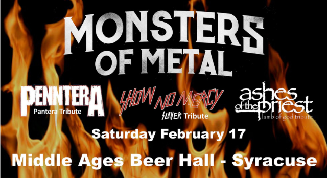 Monsters of Metal featuring Penntera (Pantera Tribute), Show No Mercy (Slayer Tribute) and Ashes of the Priest (Lamb of God Tribute)