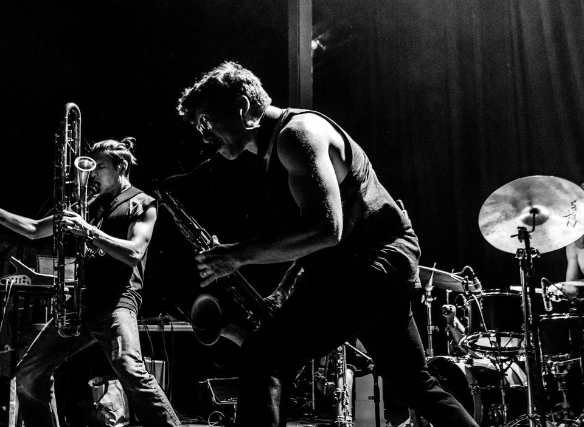 Moon Hooch began busking in the subway platforms of NYC in 2010, quickly getting noticed by the NYPD, who had to ban them from locations that couldn’t handle the crowds. In a few short years they were opening for the likes of Beats Antique, They Might Be Giants, and Lotus, while selling out their own headline shows at marquee venues around the United States and Europe. Their unconventional sound and techniques, utilizing found objects like traffic cones, landed them appearances on NPR’s Tiny Desk in America, “Later…with Jools Holland” in the UK, “Hamish & Andy’s Gap Year” in Australia, and private audiences with the Premier League’s Chelsea F.C. They are currently touring the world.