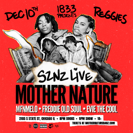 Mother Nature is the irresistible force of Klevah and TRUTH—emcees devoted to building a legacy founded on defiance and self-discovery. The Chicago-based duo is the answer for listeners seeking both substance and simplicity. As educators, they have mastered the ability to deliver weighty content through uplifting BARZ that pierce the conscience. With Peace and Love as their weapon and community at their foundation, these Gr8Thinkaz are on their way to provoking a pivotal shift in the next generation. Mother Nature embarked on an independent national tour as an extension of the release of the 'SZNZ' mixtape! 'SZNZ' is Mother Nature's 2021 mixtape in collaboration with producer Boathouse and Chicago label Closed Sessions. The messages in the tape bring LIFE, LIGHT, and KNOWLEDGE back to mainstream music, uplifting black and brown communities thru authentic HipHop culture. This show is a celebration of Mother Nature's ever-growing community in Chicago.