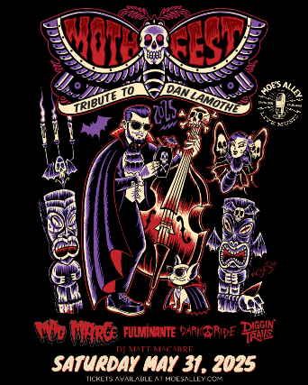 Mothfest 2025 celebrates the life of beloved Santa Cruz musician Dan Lamothe with a special event featuring music from Mad Marge, Fulminante, Dark Ride and Diggin' Trails plus specialty drinks and more!  Proceeds from ticket and raffle sales will go to local charities in Dan's name. Saturday, May 31st Doors: 7pm / Music: 8pm $15 in advance / $20 day of the show 21+ MAD MARGE Mad Marge of the infamous psychobilly group "Mad Marge and the Stonecutters" have returned, along with guitarist Matt Romero and bassist Edgar Villareal from The Stonecutters fame. Bringing along with them long time friend Brent Ventimiglia from thrash metal gurus "Thrashquatch" FULMINANTE ¡Santa Cruz, California based Latin Punk Party! Danceable, drinkable music. ¡Your new favorite banD! DARK RIDE The Bay Area's premiere "Horror-Punk" band, Dark Ride has quickly established a following with their melodic, punk-rock anthems influenced by the likes of The Misfits, AFI and Alkaline Trio. Since the release of their debut EP in 2021 has played all over the US and will soon be releasing their first full length record "Blade Manor". The passion project of Santa Cruz native Emilio Menze (Stellar Corpses, Ambivalence, Plan 9). DIGGIN' TRAILS Diggin Trails is a five-piece Americana rock n' roll band hailing from Santa Cruz, California. With a diverse lineup of talented musicians, the band blends elements of country, rock, bluegrass and punk to create their unique and captivating sound.