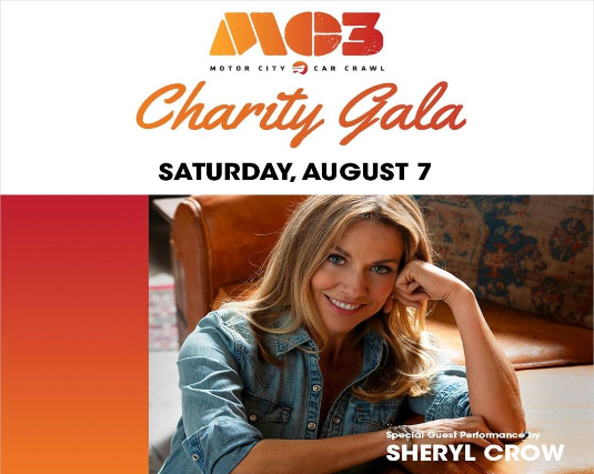 Singer-songwriter and nine-time Grammy Award winner Sheryl Crow will headline the Motor City Car Crawl Charity Gala taking place in downtown Detroit at Campus Martius on August 7, 2021.