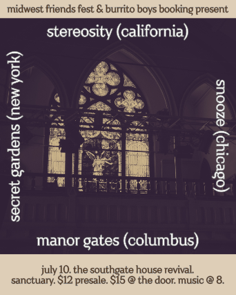 MWFF & Burrito Boys Booking Present: Stereosity, Snooze, Secret Gardens, Manor Gates
