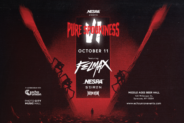 Pure Spookiness VI marks the return of Central New York’s most electrifying annual bass showcase. Back for its 6th installment, the series is coming back bigger, louder, and more unforgettable than ever before. This year’s headliner, FELMAX, brings his signature high-octane sound to deliver the ultimate bass experience. Pure Spookiness VI is set to be the best edition yet.