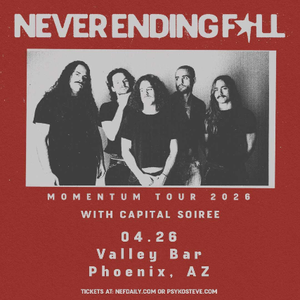 Psyko Steve Presents NEVER ENDING FALL Sunday, April 26th 2026 Doors at 7:00 / Show at 7:30 16+ Advance General Admission Ticket: $20 + fees Day of Show GA Ticket: $25 + fees