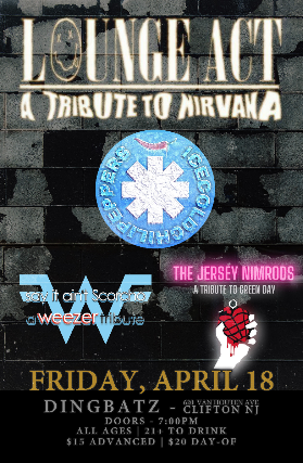Nirvana Tribute "Lounge Act"Ice Cold Chili Peppers (RHCP Tribute) Say It Ain't Scorcho (Weezer Tribute) Jersey Nimrods (Green Day Tribute)