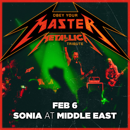 The Middle East presents: - Obey Your Master - A Tribute to Metallica, 18+, $20 adv / $25 dos, 7:30pm doors