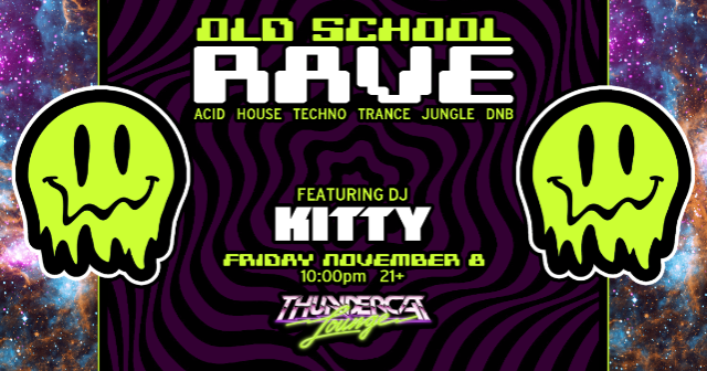 Break out your freshest Rave and Club Kid gear and rewind through space and time to the future, as KITTY brings you the sounds of the 1990s underground. Acid House, Techno, Trance, Jungle, and Drum & Bass. Bring glow sticks and your dancing shoes. PLUR in full effect.