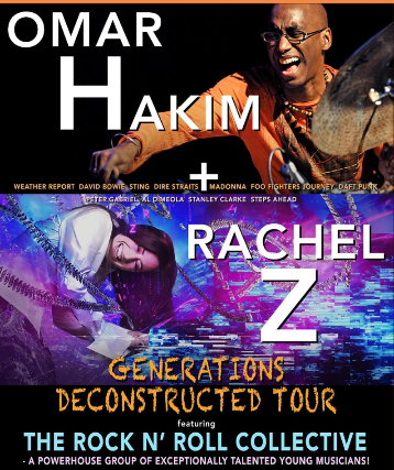 Featuring legendary drummer Omar Hakim (Weather Report, Bowie, Sting, Madonna) Rachel Z (Peter Gabriel, Steps Ahead, Wayne Shorter) Ozmosys, and the Rock N’ Roll Collective