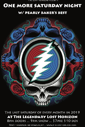Pearly Baker’s Best is a Grateful Dead tribute with both a weekly residency and a devoted following at one of the top local venues in Syracuse, NY every Monday night. Playing the music of The Grateful Dead, The Jerry Garcia Band, The Beatles and other covers they delight their devout followers with a powerful show once a week out of the band’s current song list which tops 180 songs. The band’s strong improvisational foundation leads the way, allowing their sets to be visualized much like weaving a tapestry; each thread of verse, chorus or bridge is expertly weaved into the fabric of their sound and playing to be completely embraced by their audience. Also, careful attention is always given to ensuring that each song is treated with the necessary vocal ingredients to cause the listener to be drawn into the music at the deepest level. The band’s desire is to provide each audience member with a ‘Grateful Dead-like experience,’ allowing them to encounter the show as a translational, musical undertaking. Currently PBB can go 9 shows without repeating a song and is always adding to it's ever expanding catalog of 200 songs which includes original songs on occasion. The band does play shows in addition to their weekly residency in Syracuse, all across New York State. The band has begun to incorporate original music into their sets and recently had the privilege of sharing their stage with David Gans; long-time archivist for the Grateful Dead, broadcaster, song writer and music journalist. David expressed a strong desire to share the stage with Pearly Baker’s again in the near future. There is truly nothing like a Pearly Baker’s Best show.
