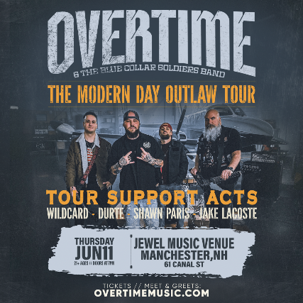 21+ EVENT! Overtime & The Blue Collar Soldiers Band are hitting the road for the Modern Day Outlaw Tour (10 Years of Hunger In My Stomach)—a full-throttle anniversary run celebrating the 10-year mark of Overtime’s RIAA Certified Gold breakout, “Hunger In My Stomach.” This tour delivers a full-length live band performance featuring fan favorites like “Next To Me,” “County Line,” and “Divided We Fall,” alongside new releases including “Soldier Up,” “Stand Your Ground,” and “Stuck In My Ways.” Supporting the tour are Wildcard, DurtE, Jake LaCoste, and Shawn Paris, creating a genre-blending lineup that fuses country grit, rock energy, and rap intensity. No backing tracks carrying the show—just real performance and high-impact live music. If you like your concerts loud, honest, and high-energy, the Modern Day Outlaw Tour delivers. 1.) General Admission: $20.00 Advance / $25.00 Day Of Show This ticket type provides entry to the concert only. General Admission is standing-room access with no reserved seating. Admission is first come, first served and does not include VIP access, early entry, or additional amenities. 2.) VIP Meet & Greet (General Admission Included): $100.00  This ticket type includes one (1) General Admission ticket to the concert. This VIP experience features a 45-minute casual meet & greet with the artist prior to the show, including a personal photo taken on the fan’s phone. The VIP package also includes one (1) custom drawstring bag, one (1) signed tour poster, and one (1) signed photo of the artist. Limited availability. Non-transferable. Tickets and VIP Meet & Greet packages are available at www.OvertimeMusic.com