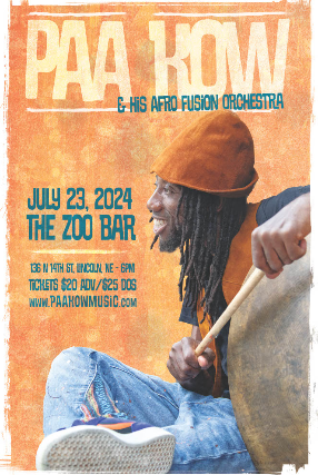 Having toured internationally, sharing stages with both African and American luminaries including Kojo Antwi, Amakye Dede and Victor Wooten, Ghana born drummer and composer, Paa Kow, (pronounced Pah-Ko), blends rhythm and artistry from his home with jazz and African roots creating his own Afro-Fusion sound. Dubbed "Ghana's most artistic drummer" (Modern Ghana), he plays a custom, hand-carved, traditionally inspired Ghanaian drum set that is the only one of its kind in the world, guaranteeing an extraordinary cultural and musical experience.