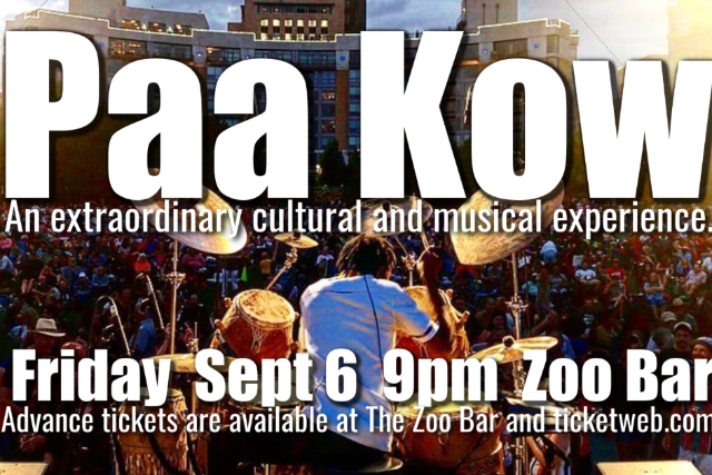 Having toured internationally, sharing stages with both African and American luminaries including Kojo Antwi, Amakye Dede and Victor Wooten, Ghana born drummer and composer, Paa Kow, (pronounced Pah-Ko), blends rhythm and artistry from his home with jazz and African roots creating his own Afro-Fusion sound. Dubbed "Ghana's most artistic drummer" (Modern Ghana), he plays a custom, hand-carved, traditionally inspired Ghanaian drum set that is the only one of its kind in the world, guaranteeing an extraordinary cultural and musical experience.