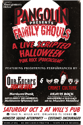 Pangolin presents THE FAMILY GHOULS - A Live Scripted Halloween Punk Rock Spooktacular featuring Frightening Performances by Our Escape and Casket Culture