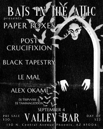 PAPER FOXES WITH POST CRUCIFIXION / BLACK TAPESTRY / LE MAL / ALEX OKAMI