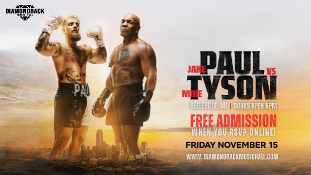 Come witness the epic showdown between YouTube sensation turned boxer, Jake Paul, and one of the greatest boxers of all time, Mike Tyson, at Diamondback Music Hall! This event promises to be a night full of adrenaline-pumping action and fierce competition. Don't miss your chance to be a part of history as these two fighters go head-to-head in the ring. RSVP online for FREE ADMISSION now. Otherwise it's $10 at the door. Get ready for an unforgettable evening of entertainment!