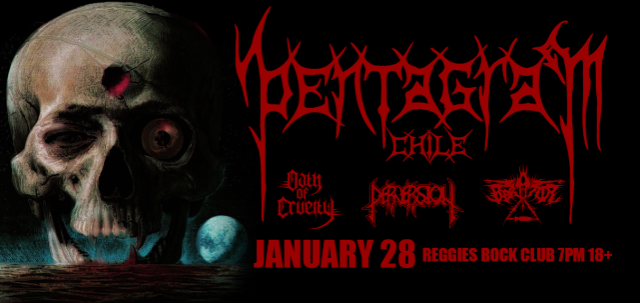 Pentagram was formed in 1985 by Anton Reisseneger (lead guitar/vocals) and Juan Pablo Uribe (bass). Inspired by bands like Venom, Slayer, and Possessed, they started their own brand of extreme metal in a time and place where the genre was in its very first steps.