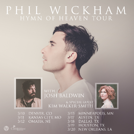Transparent Productions presents Phil Wickham’s nationwide Hymn of Heaven Tour, launching Spring 2022 with special guests, Josh Baldwin and Kim Walker-Smith! This highly anticipated tour comes on the heels of Wickham’s multi-week, chart-topping radio success for “Battle Belongs” and “House of The Lord” - two songs off his newly released eighth studio album, Hymn of Heaven. The full-band tour will be making 33 stops across the country throughout 2022. Don’t miss these incredible nights of worship featuring favorites like Battle Belongs, Living Hope, This Is Amazing Grace and many others!