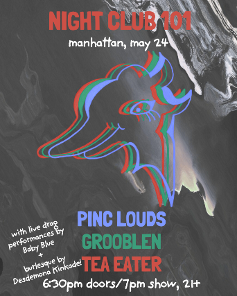 Pinc Louds, Grooblen, Tea Eater featuring live burlesque by Desdemona Kinkade and drag by Baby Blue