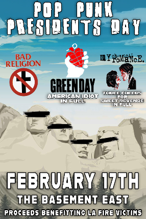 Pop Punk President's Day feat. tributes to Green Day's American Idiot, My Chemical Romance's Three Cheers for Sweet Revenge, and the hits of Bad Religion - Benefitting LA Fire Victims