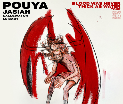 Born and bred in Miami, Florida, Kevin Pouya certainly does not look the part of your everyday rapper; but little be known, is he not just some wannabe who spends his time passing out his totally lit, extremely fire mix tape outside of McDonalds. Since discovering his artistic capabilities at the adolescent age of 17, Pouya has divulged four mix tapes as well as his debut full-length album Underground Underdog, which was released late April 2016 and reached #2 on the iTunes Top Hip Hop Albums chart sitting right behind Drake. Pouya’s UU brings forth an intricately crafted, malleable voice that will span multiple musical territories over the years to come. Following an immensely successful spring tour, Pouya was accompanied alongside $Uicideboy$, not to mention he dropped a new EP for free download entitled South Side Suicide.