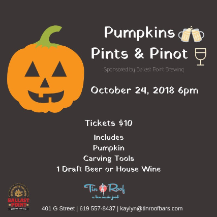 Ticket includes the pumpkin, carving tools and 1 draft beer or house wine!