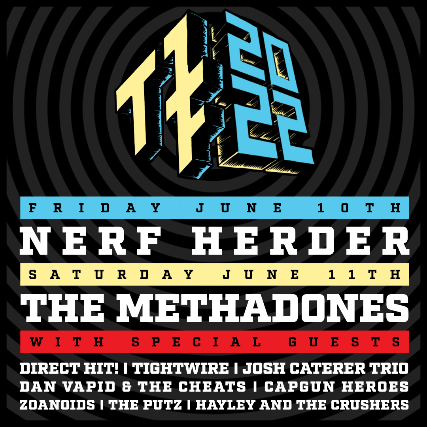 Pioneers of the late 90’s Pop-Punk and Geek Rock movements, Nerf Herder are perhaps best known for their powerful theme to the iconic Joss Whedon TV show, Buffy The Vampire Slayer. Formed in Santa Barbara, California, in 1994, Nerf Herder was signed to major label Arista Records soon after their ironic tribute “Van Halen” stormed the Modern Rock charts in 1996. The video for their follow-up single, “Sorry”, featured Mark Hamill and Miguel Ferrer, and played regularly on MTV. Following years saw the band touring the world multiple times, and releasing a number of albums on various labels, including esteemed indie punk label Fat Wreck Chords and novelty powerhouse Oglio Records.