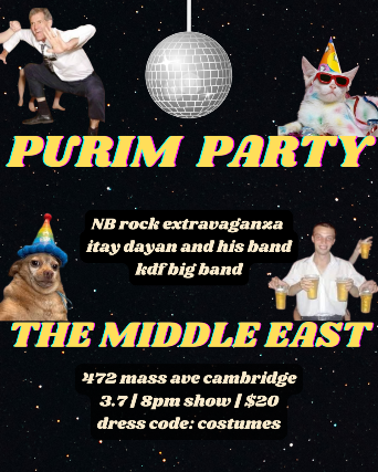 The Middle East presents: Purim Party feat NB Rock Extravaganza, itay dayan and his band, KDF Big Band - 18+, $20, 8:00 PM Doors