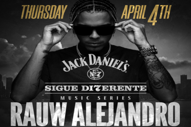 Jack Daniel’s & 8 SEGUNDOS  invites you to a FREE mega show!   RAUW ALEJANDRO Live in concert!   FREE when you RSVP at http://www.SigueDiferente.com Or Text JOES to 545454 for more info!