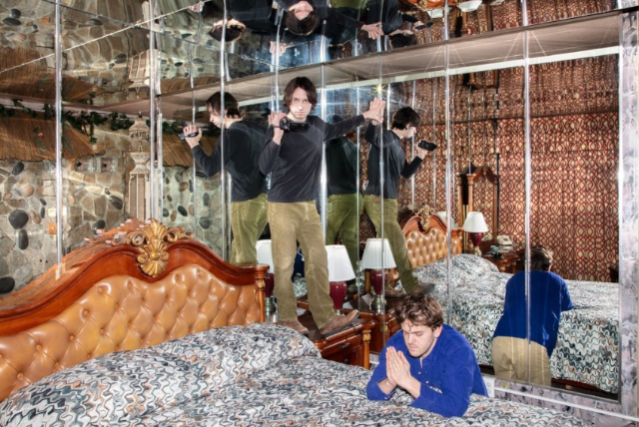 Aaron Graham and Tucker Elkins make up Ray Bull, but they function less like a traditional band and more like a continuous, living feedback loop. They met while in college at Cooper Union, not as musicians, but as visual artists. Graham focused on images, Elkins on film. When they reconnected years later at a gallery show in Brooklyn, they realized they had both been privately drifting toward music. They moved into a loft in Bushwick, and the lines between their lives and their art began to dissolve.