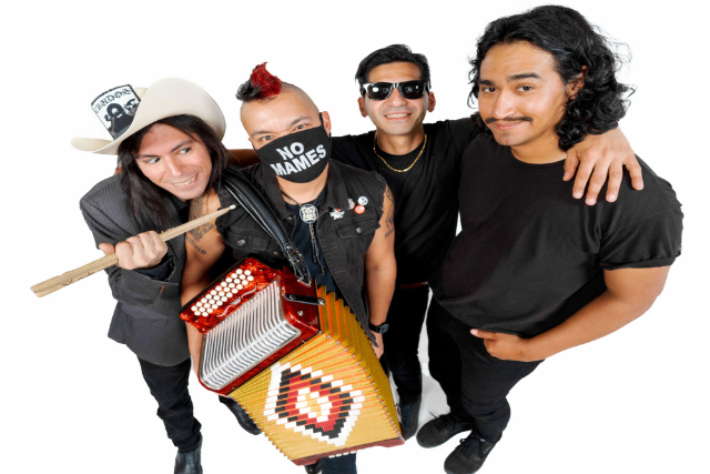 Piñata Protest’s unique and catchy sound takes the traditional folk rhythms of Tex-Mex music (conjunto and norteño music that is native to the South-Texas and Nortern-Mexican region they originate from) along with the three-row button accordion and combine that with the fast tempos and attitude of punk rock, ska, and many other genres. Along with the use of traditional instruments and rhythms the band also sings in their regional mix of Spanish and English (or Spanglishas it’s called locally). Their songs lyrics cover a range of topics, from political topics close to the ethno-identities of the band, drinking, love, religion, and racism. Adding to their sonic performances is a lively and energetic live show that ignites crowds to mosh, skank, and twirl their dance partners.